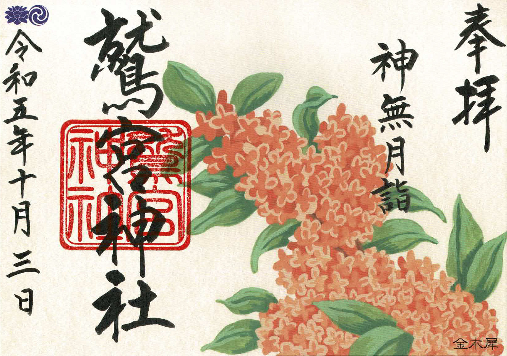関東最古の大社、埼玉県の鷲宮神社の御朱印用イラストをお描きしました。